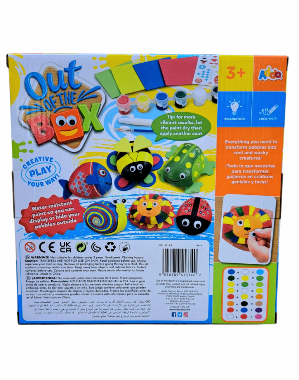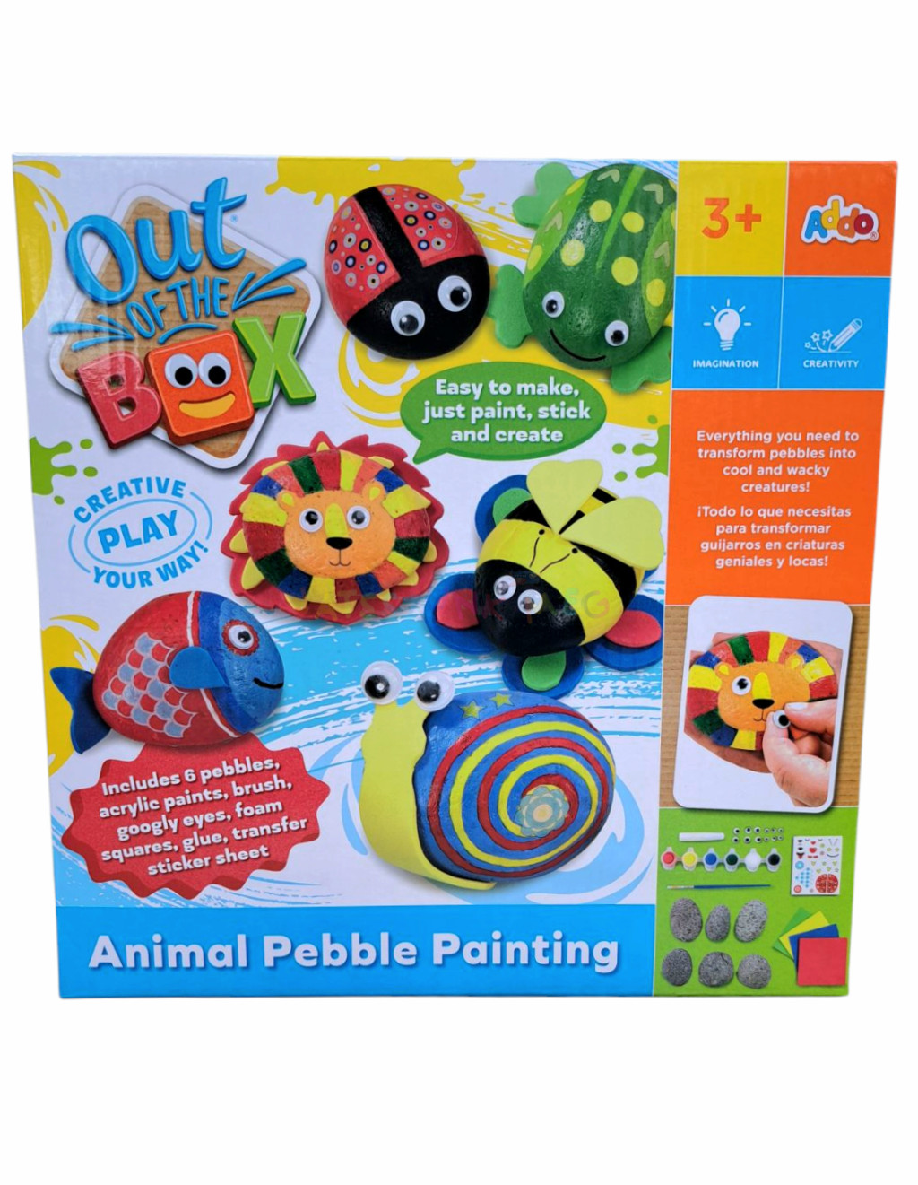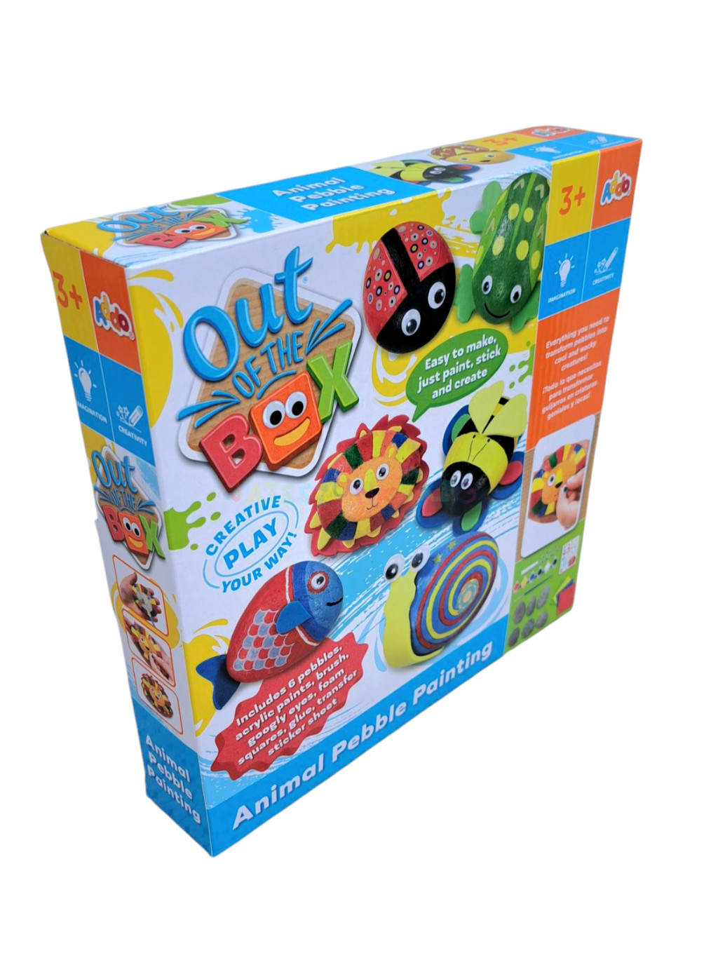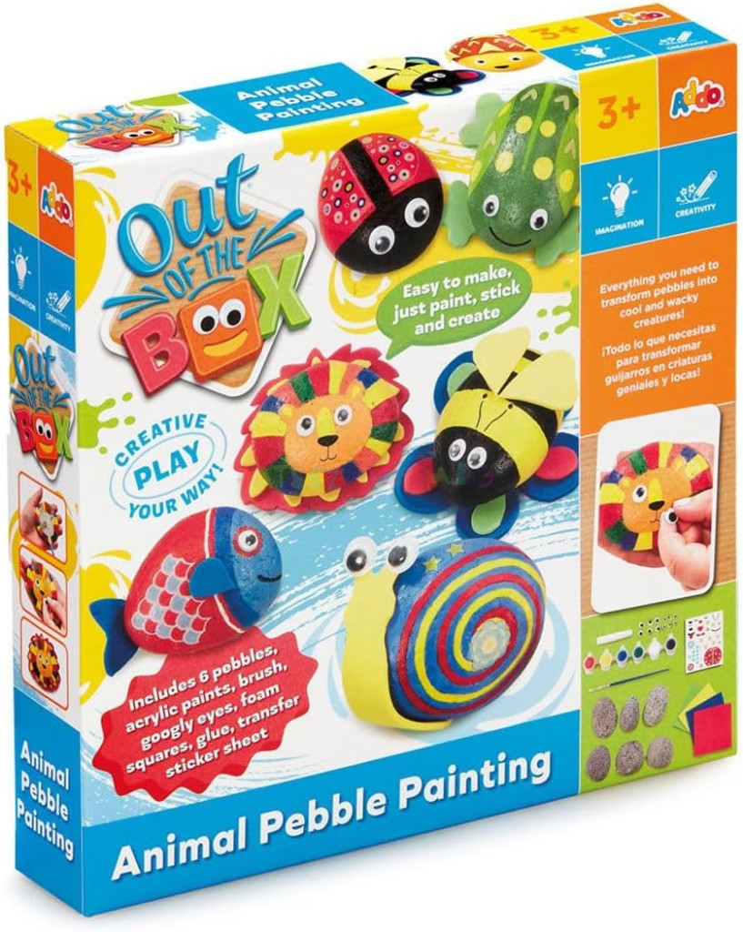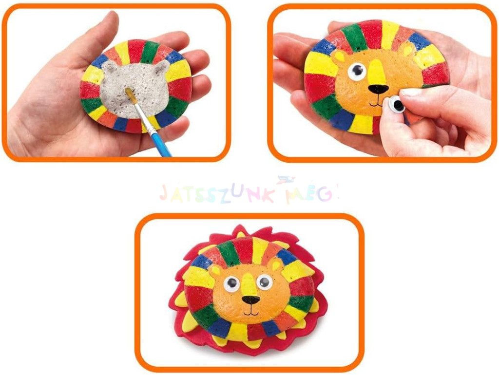 Élvezd a rengeteg kézműves mókát a könnyen elkészíthető, dobozból kivágható állatos kavicsfestő készlettel.
