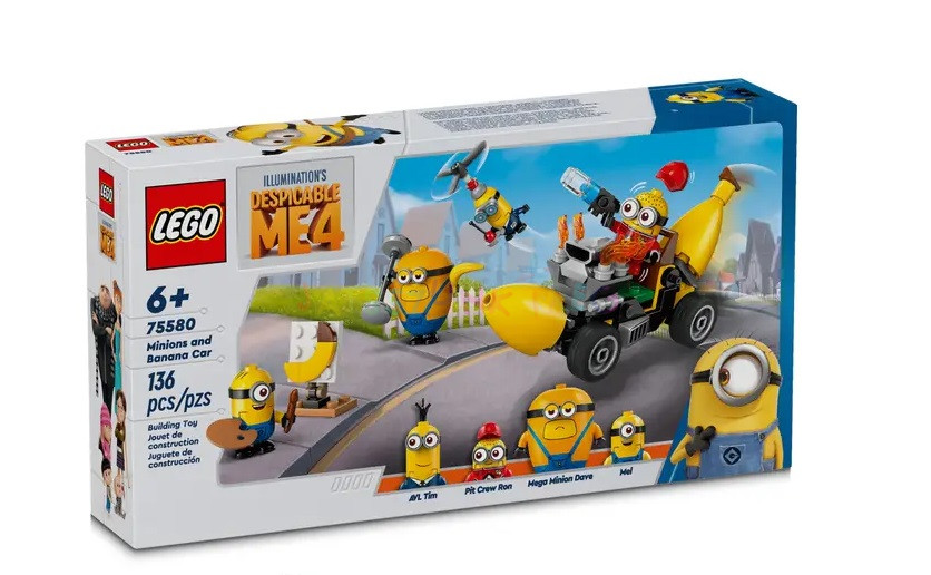 Lepd meg a Minyonok rajongóit a LEGO Gru 4 Minionok és a Banánautó (75580) készlettel.