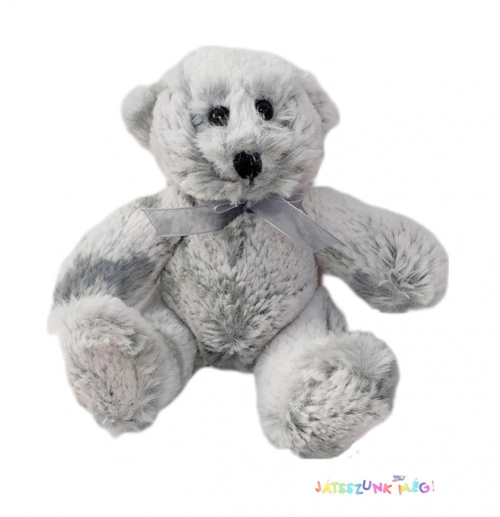 Aranyos szürke plüss maci, cuki masnival a
