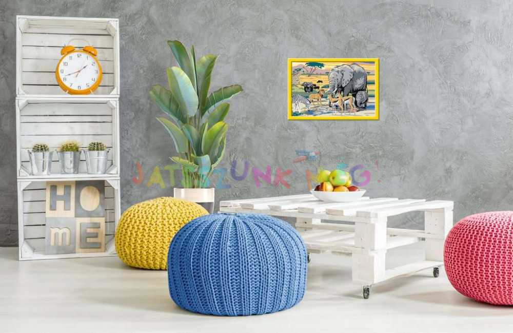 A színes motívumvonalaknak köszönhetően a gyerekek gyorsabban felismerik az afrikai állatok egész motívumát és a színeket.
