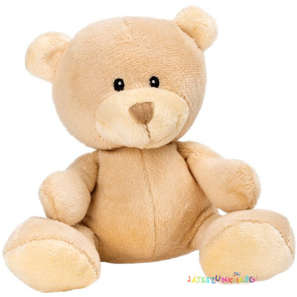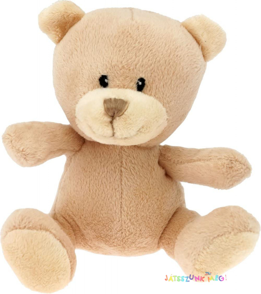 Minőségi bézs színű szuperpuha plüss bújós maci játék hímzett orral, szemekkel és nagy boldog mosollyal.