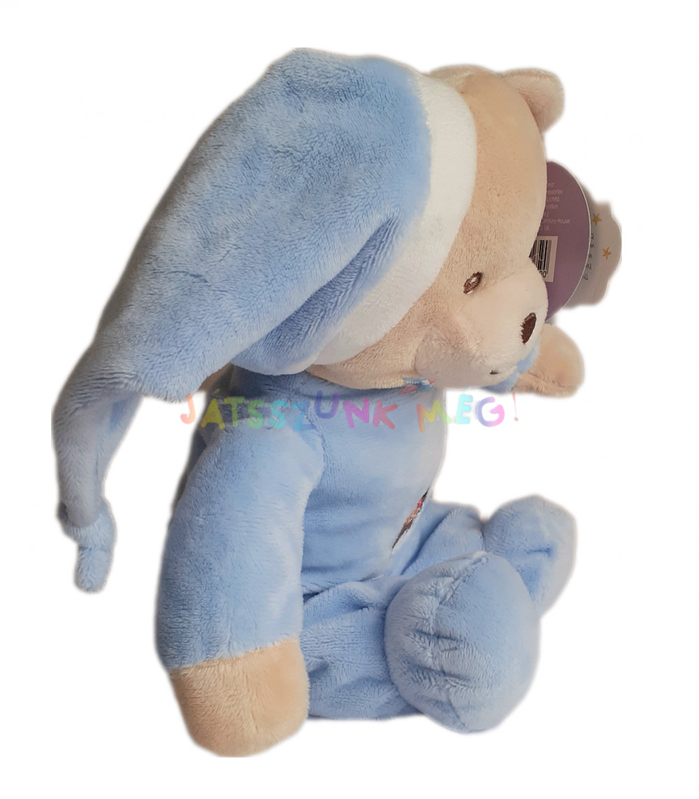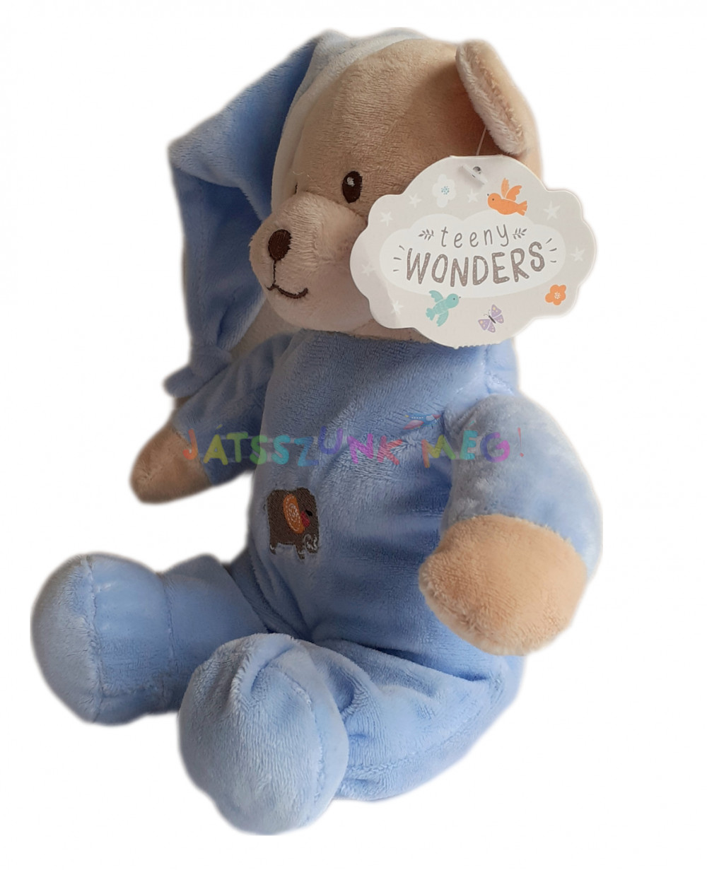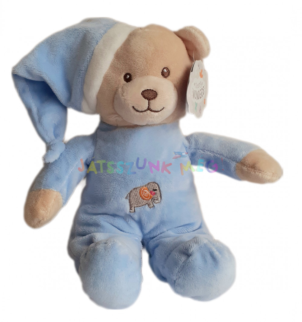 Ez a bájos 25cm-es puha plüssmaci már szép hímzett mintájú világoskék színű